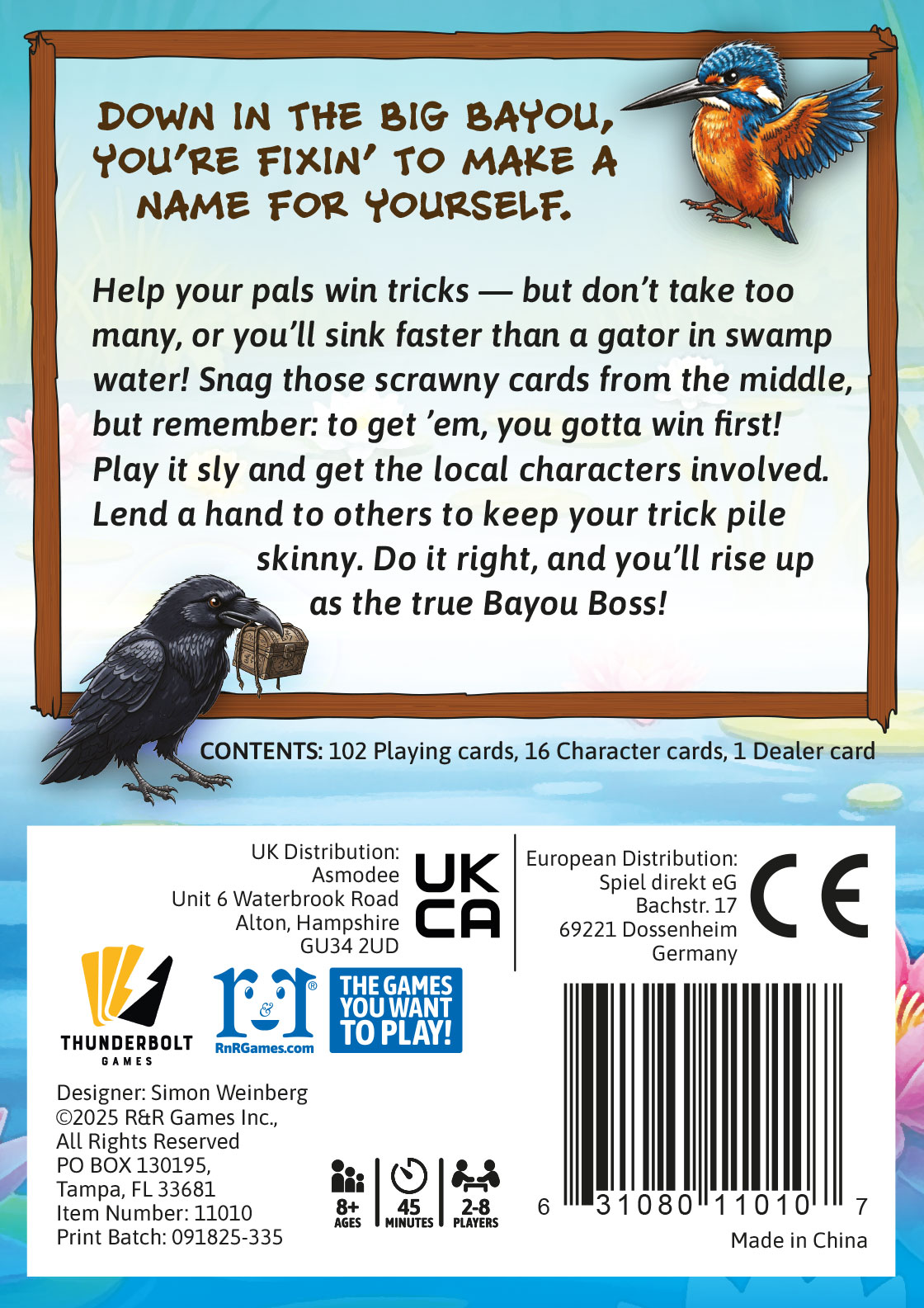Bayou Boss is a sly ol’ trick-takin’ card game, loaded with two BIG honkin’ twists: